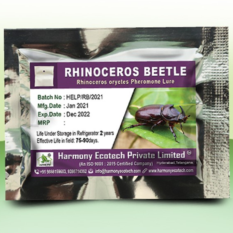This product is intended for use as attractant of Rhino beetle (Rhinoceros Oryctes) in Coconut and oil palm Plantations, in order to trap them for monitoring and mass trapping. This is found to reduce the intensity of pest incidence, leading to a reduction in crop damage thereby improving the yields and output quality.