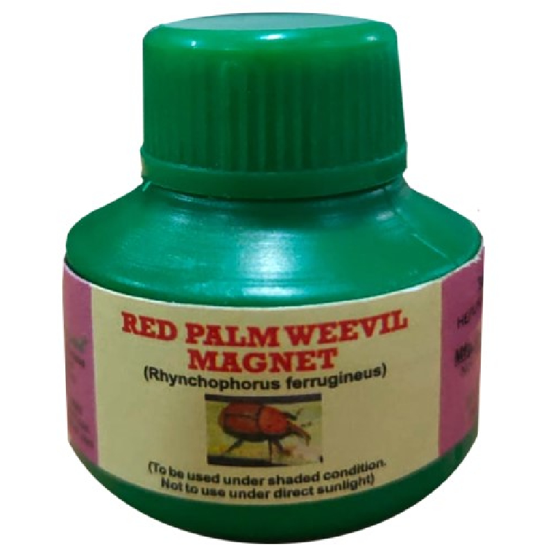 This product is intended for use in palm plantations (such as date, oil palm, coconut and Areca) to enhance catch rate of the insect Red Palm Weevil (Rhynchophorus ferrugineous) and trap them in specially designed traps in conjunction with pheromone attractant for monitoring and mass trapping purposes. This is found to reduce the intensity of pest incidence, leading to a reduction in crop damage thereby improving the yields / output quality.